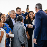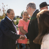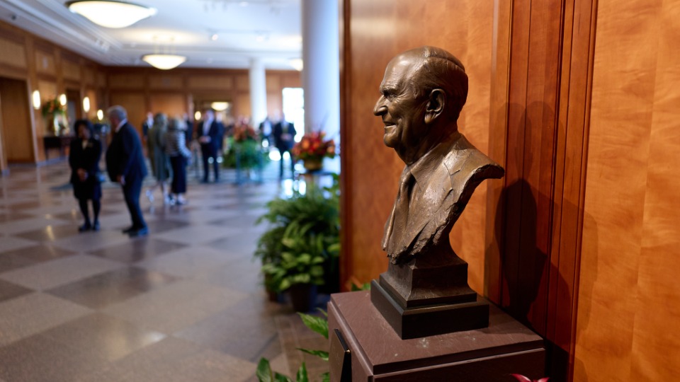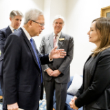 2025 by Intellectual Reserve, Inc. All rights reserved.Старейшина Герит У. Гонг от Кворума на дванадесетте апостоли (вляво) заедно със старейшина Матю С. Холанд от Седемдесетте (вляво отзад) и директора по посрещането в Църквата Гордън Смит (по средата), докато апостолът говори с председателя на America250 Роузи Риос (вдясно) в мемориалната сграда „Джозеф Смит“ на 13 ноември 2025 г., четвъртък. 2025 by Intellectual Reserve, Inc. All rights reserved. Изтегли снимка