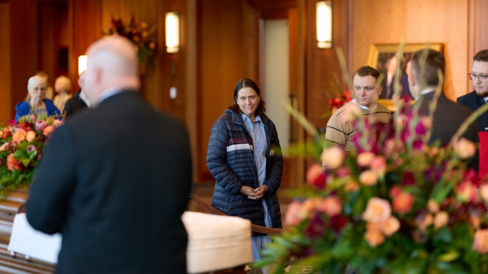 Членове на Църквата на Исус Христос на светиите от последните дни от Пасадена, Палисейдс и Алтадена, които са били засегнати от пожарите, се събират в зала за събрания, за да чуят президент Джефри Р. Холанд във Ван Найс, Калифорния на 22 февруари 2025 г.2025 by Intellectual Reserve, Inc. All rights reserved.През септември общият президент на Неделното училище за деца Сюзън Х. Портър заедно със сестра Дж. Анет Денис от Общото президентство на Обществото за взаимопомощ извършиха служение в Лесото на скърбящите след трагичния инцидент в края на юни, който отне живота на 6 млади жени и 4 църковни ръководители.